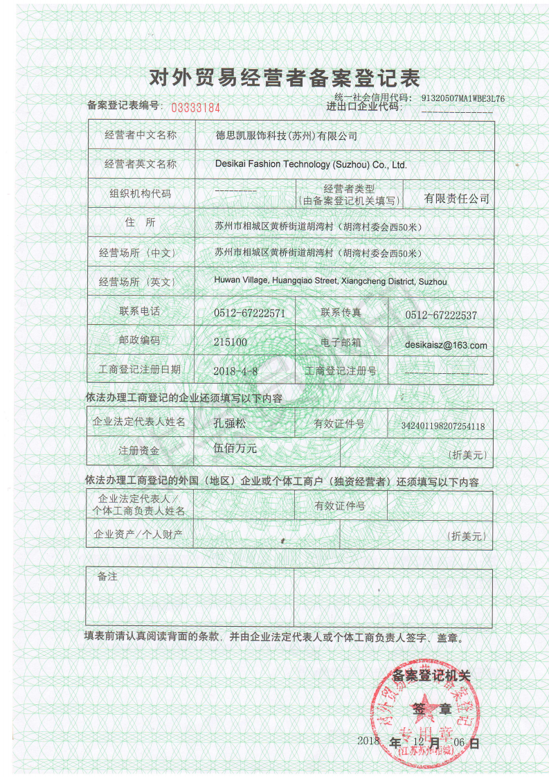 德思凱服飾科技(蘇州)有限公司系蘇州零點(diǎn)職業(yè)服裝廠(2006年注冊(cè))原股東于2018年4月份注冊(cè)成立,主營業(yè)務(wù)是阿里巴巴國際站和績(jī)優(yōu)外企的服裝服飾定制業(yè)務(wù)。本公司是一家集設(shè)計(jì)、生產(chǎn)、銷售于一體的生產(chǎn)型企業(yè),專業(yè)從事各種工作服、職業(yè)裝、休閑服飾的設(shè)計(jì)與生產(chǎn)。公司匯集了從業(yè)數(shù)十年經(jīng)驗(yàn)的服裝設(shè)計(jì)師和優(yōu)秀的管理人才,把“誠信立足天下,品質(zhì)引領(lǐng)未來”作為企業(yè)的指導(dǎo)思想和行為準(zhǔn)則,力爭(zhēng)為客戶體現(xiàn)獨(dú)有的企業(yè)文化。